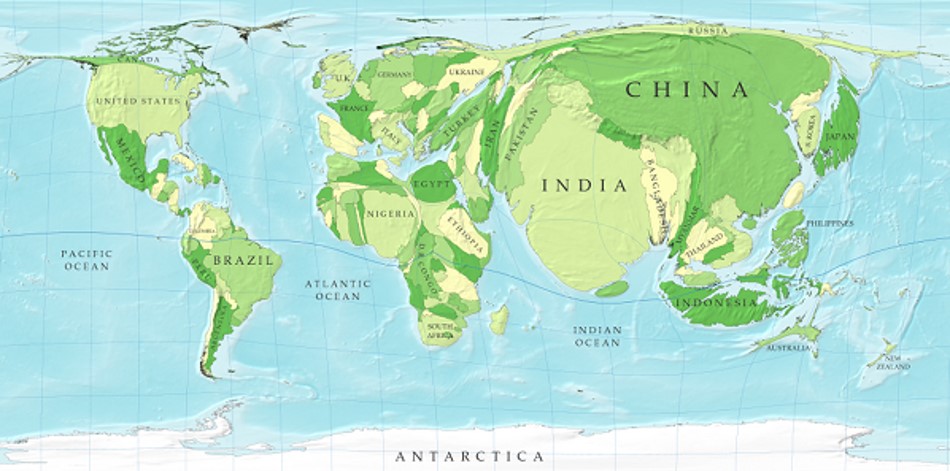 the countries have been mapped according to the population density that they have in their respective cities. Thus, China tops the list while India comes second. Thus, these Asian countries comprises almost 50% of the people living in the entire world in almost 1/5th of the land on this Earth. Thus, these countries have a lot of emerging potential in the upcoming years.